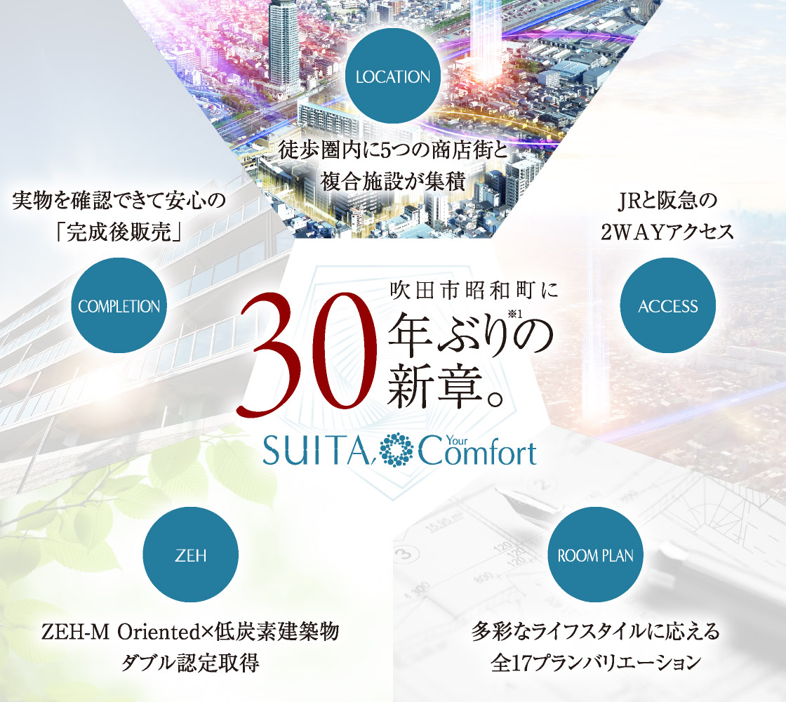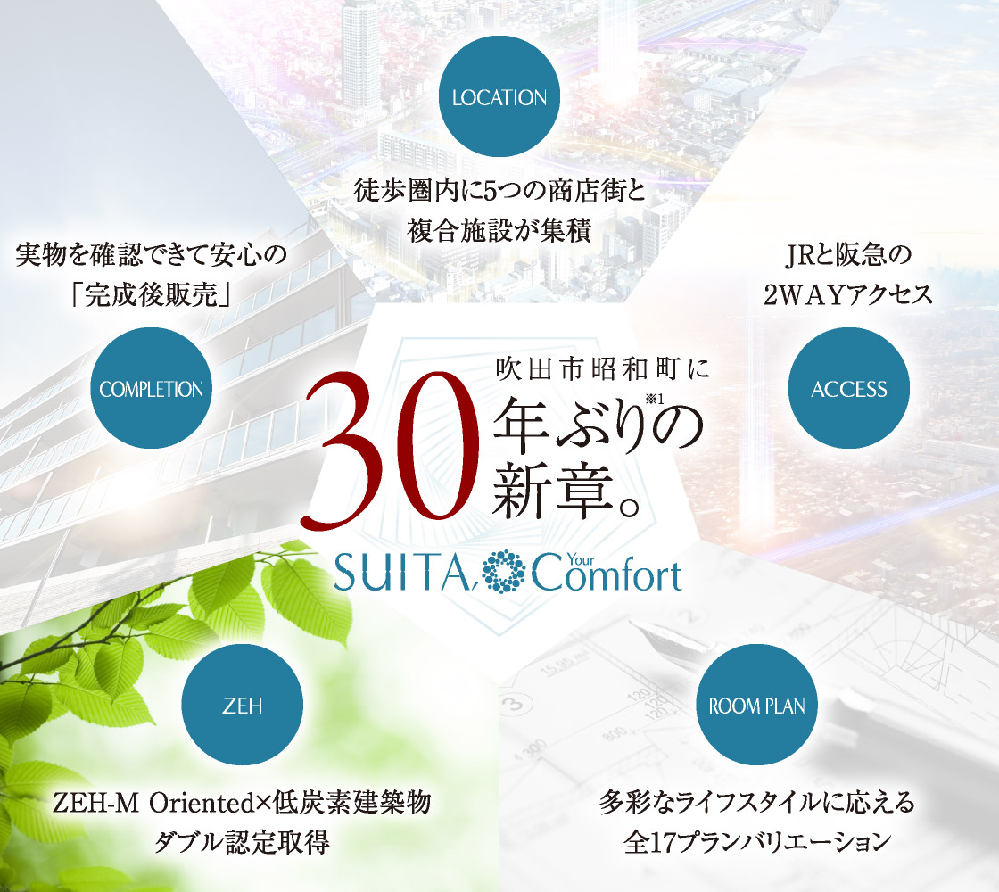 ※1.「サンメゾン吹田」は「昭和町」に誕生する新築分譲マンションとして、30年ぶりの供給となります(2026年2月MRC調べ)。