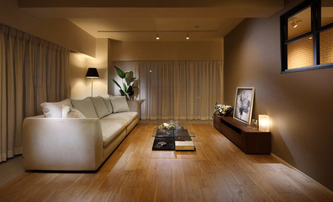 和と北欧の美学を融合させた「ジャパンディスタイル」。オーク材のフローリングを基調に、日本の侘び寂びと北欧のヒュッゲが薫る、和モダンな空間を仕立てています。